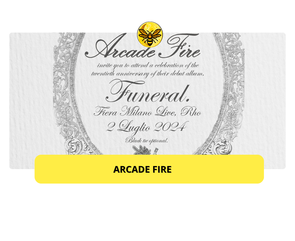 Gli Arcade Fire sono un gruppo musicale indie canadese emerso all’inizio degli anni 00’ anche grazie alle loro ambiziose performance live; nel 2004 pubblicano il loro primo album Funeral, che entusiasma il pubblico e la critica che lo acclama come uno dei migliori e più importanti album degli anni Duemila. Proprio in virtù del confronto catartico fra tragedia e celebrazione contenuto nel progetto, il loro album di debutto raggiunge la cima alle classifiche di tutto mondo ed è stato definito “album numero 1 degli anni ’00” da Rolling Stone.