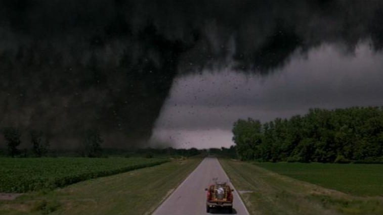 Tutto il film si gioca con il parallelismo tra i turbolenti tornadi che invadono la vita di Jo, e i sentimenti contrastanti che prova per il futuro ex marito Bill. La sceneggiatura trasforma il tornado non solo nel devastante effetto climatico che è ma anche nell’amore che arriva, invade e travolge i nostri protagonisti. Il tornado è un legame che deve essere controllato e per farlo non solo c’è bisogno che le due parti facciano pace, ma con l’aiuto di una gang simpatica di amici che spieghi loro che non possono fare a meno dell’adrenalina che i tornadi/amore gli provoca. Questo fenomeno atmosferico diventa, così, una sorta di metafora del legame forte che Jo e Bill provano l’uno per l’altra.