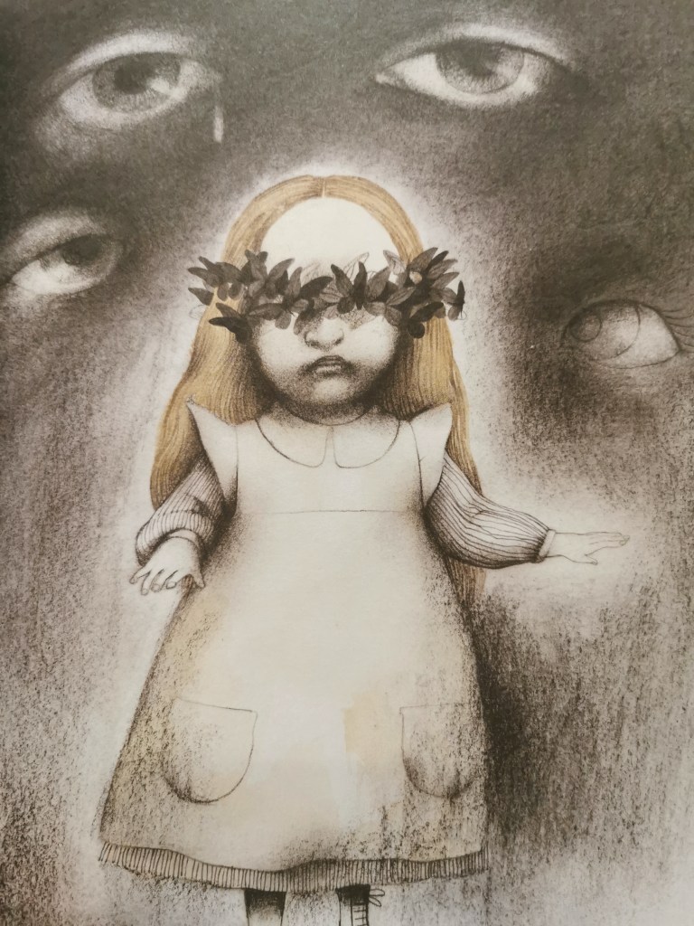 È la stessa Helen che, attraverso la penna della Juan, si racconta. Lo fa in maniera poetica: la sua cecità, la sua solitudine ed incapacità di comunicare con il mondo esterno diventano delle farfalle nere, centinaia di farfalle che si posano su i suoi occhi per impedirne la vista. Così come lo sfarfallio costante delle loro ali, diventa la causa della sua sordità. Ad accompagnare il testo, le illustrazioni oscure, a tratti anche angoscianti, rendono la lettura del libro particolarmente immersiva. È facile entrare in empatia con la protagonista/narratrice, perché la sua sofferenza diventa anche quella del lettore.