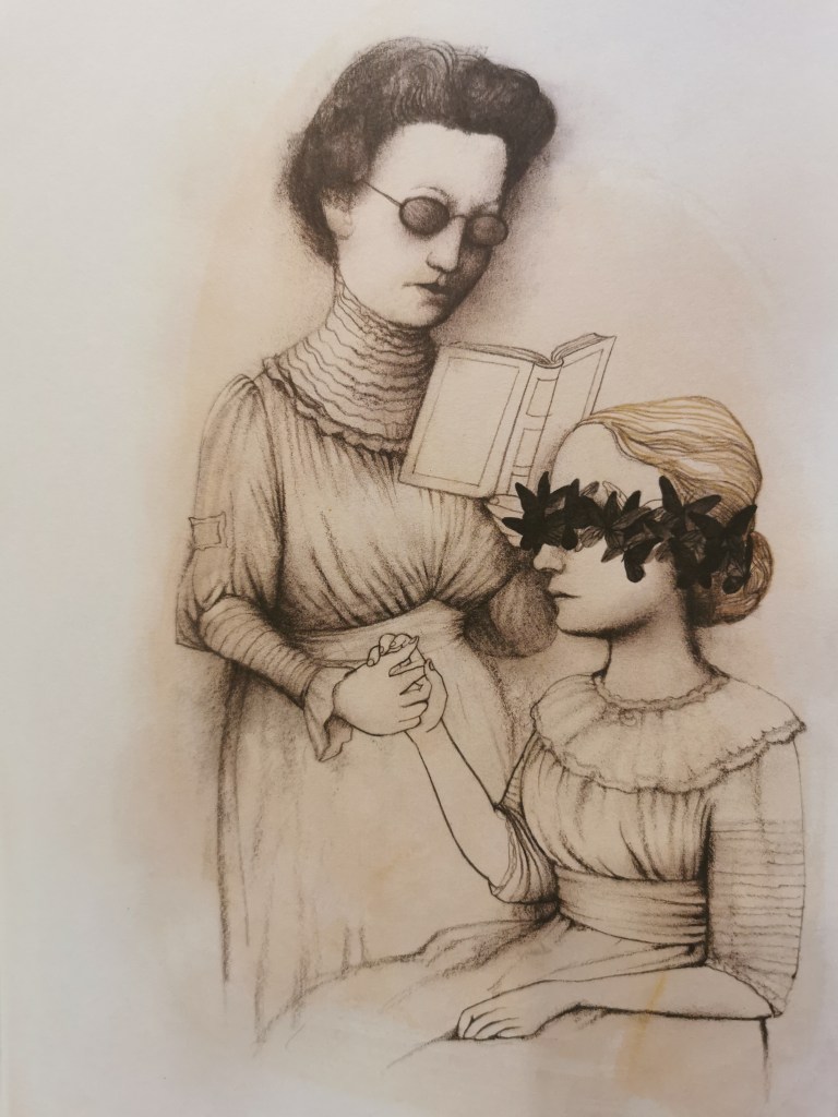 Pagina dopo pagina, illustrazione dopo l’altra, tra le due nasce una profonda relazione. Non facile, soprattutto all’inizio, ma l’educatrice riesce ad aprire un canale di comunicazione tra Helen ed il mondo: apprendere tramite il tatto, fino ad apprendere il braille, dando dunque prova di una grande intelligenza, riuscendo infine a parlare e “sentendo” le parole alloggiando le dita sulle labbra, per avvertire la vibrazione nella gola della persona che parla.