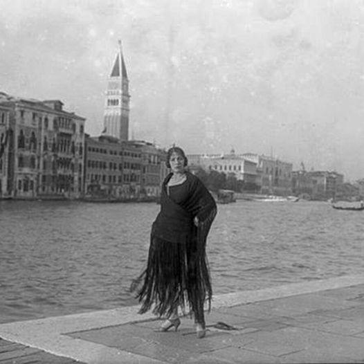 Uno dei progetti più importanti di quest’anno del Gomitolo a Venezia è stato lo Scialle veneziano: esso è sempre stato un capo molto di moda nelle calli di Venezia, basti pensare al detto tacar boton (attaccare bottone), nasce dall’uso di questo scialle che le veneziane indossavano. Essi avevano delle frange molto lunghe e quando le donne parlavano con i soldati, nel movimento dello scialle le frange ogni tanto si impigliavano nei bottoni delle loro giubbe e da qui il famoso detto. In questa città è un capo importante soprattutto perchè ha rappresentato un periodo del dopoguerra dove vi era lutto e quindi era nero ed era inoltre assolutamente alla moda. Tutte le donne veneziane avevano lo scialle, tant’è che nel 1927 fu indetto un concorso e Tina Marinetti è stata la vincitrice. “Quando ho visto questa foto fatta alla Fermata della Salute, mi si è scaturita proprio l’idea di dire: perché non riportare in voga questo capo un po’ lasciato perdere?”