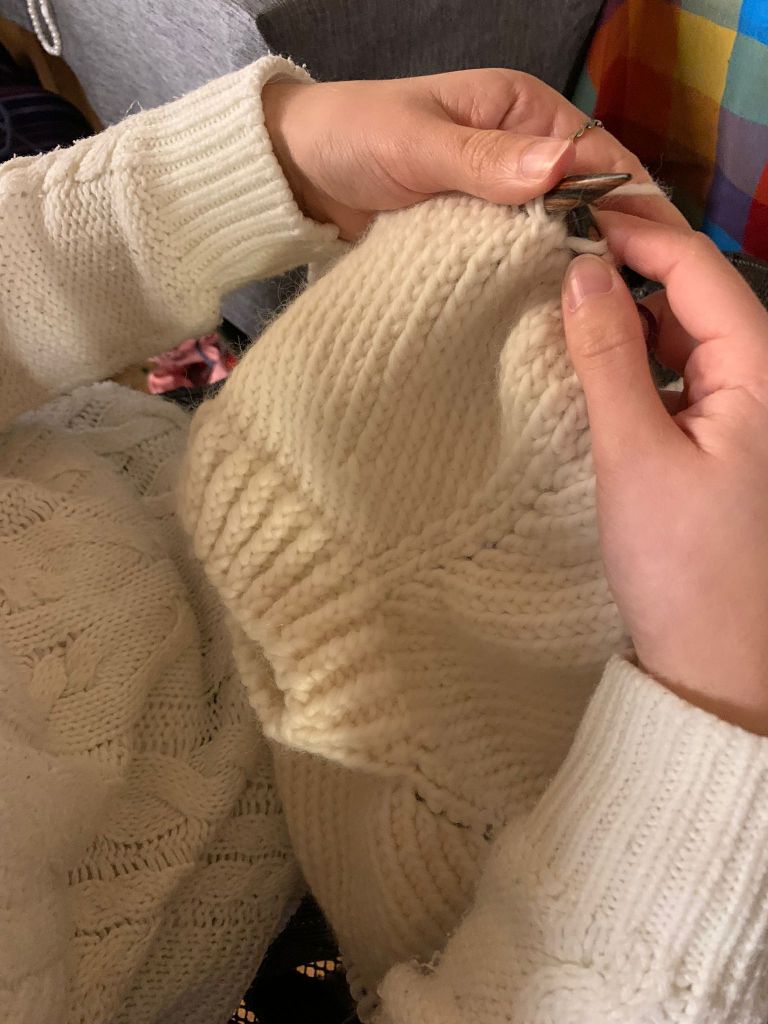 “Io parlo per me stessa” dice Claudia “Ma nel momento in cui mi siedo e faccio a maglia, incontro un pochino la calma, la quiete di me stessa. Il movimento ripetitivo mi serve tante volte proprio per entrare in uno stato quasi di ipnosi e mi rilassa, mi scioglie anche qualche pensiero o qualche cosa che c’è in testa.” Grazie ai Knitcafè lei stessa ha conosciuto persone stupende, che sono diventate sue amiche e quindi spera che questo gruppo continui e che diventi sempre più affollato.