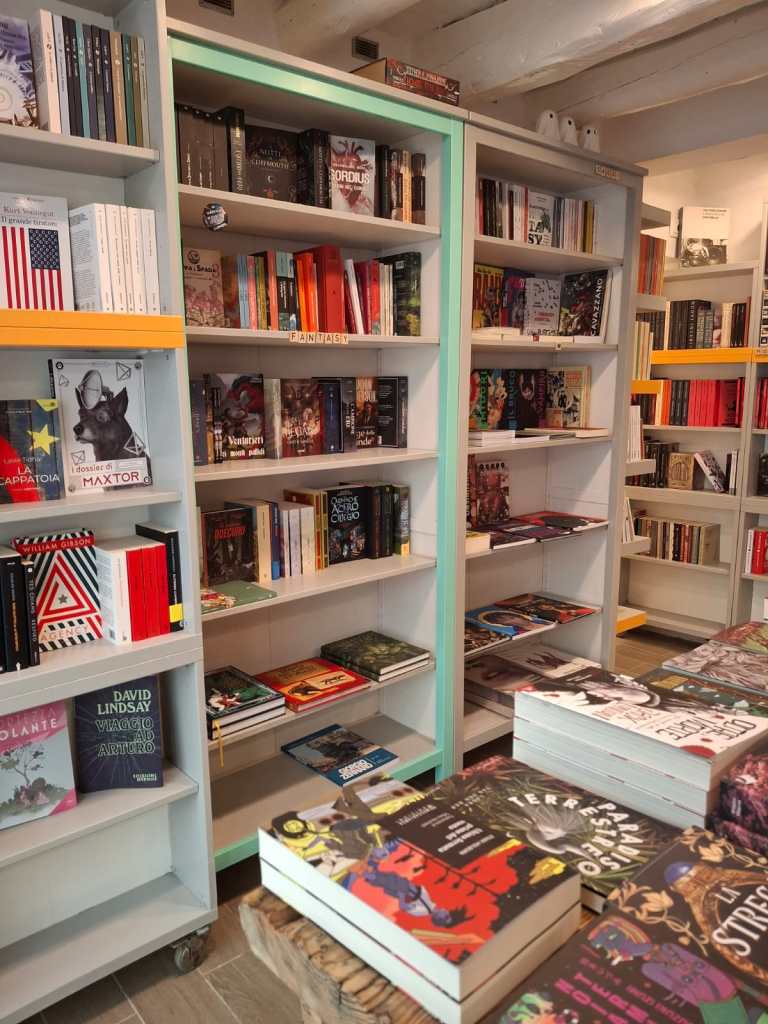 “Quindi abbiamo provato a fare questa cosa, cioè di invertire la conformazione classica di una libreria.” Di solito in una libreria ci sono questi testi in un unico armadio mischiato di horror, fantascienza e fantasy, magari anche più nascosto possibile, ma alla Libreria Karass, sono messe ben visibili e anzi sono anche quelli più importanti.