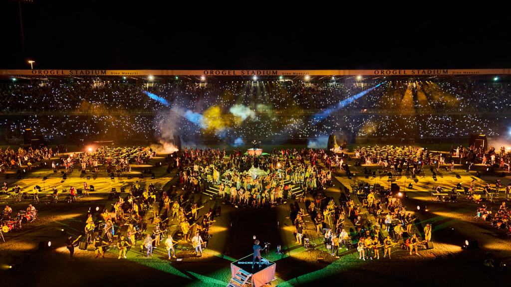 Nati nel 2015 da un’idea di Fabio Zaffagnini, i Rockin’1000 sono la più grande rock band del mondo, formata da musicisti di ogni livello e provenienza che suonano all’unisono in eventi epici.
