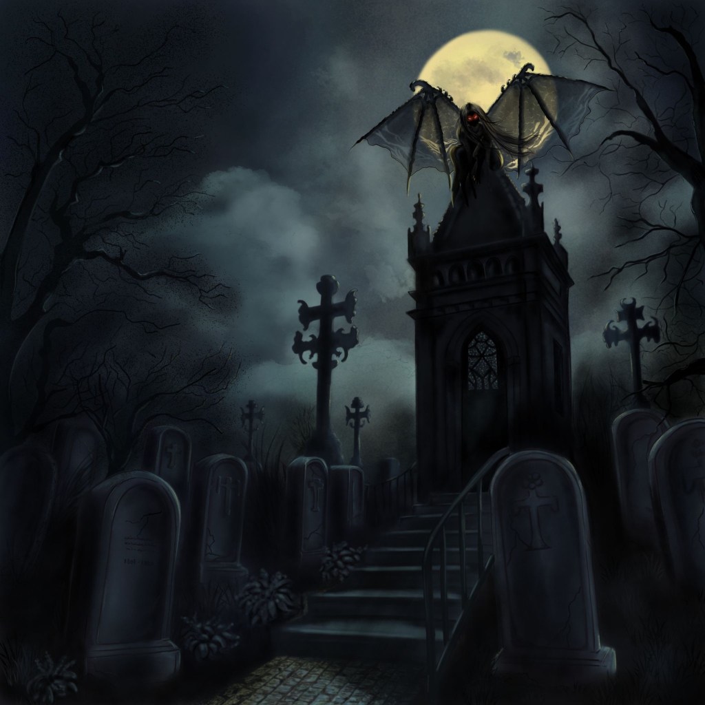 Descrizione: Sotto una luna piena che squarcia il velo di nuvole scure, si staglia un antico cimitero. Le lapidi grigie raccontano storie silenziose e secoli di oblio. Il Guardiano, un’icona di potere di un mondo perduto,regna incontrastato su questo regno di tenebra eterna.
