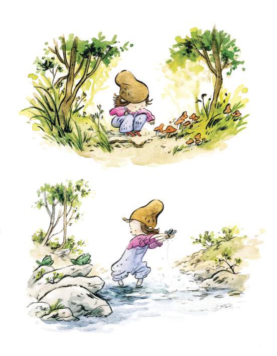 Spesso nella narrativa per bambini il bosco è rappresentato come un luogo tenebroso e ricco di avversità. In questo caso, invece, la natura è un personaggio benevolo. La nostra protagonista si avventura tra gli alberi con ammirazione e rispetto verso ciò che la circonda. Completamente sola, si rivolge agli elementi naturali per avere delle risposte. Questi, ovviamente, non le rispondono, ma con la loro semplice presenza aiutano Primula a riflettere sui prossimi passi da compiere. L’ambientazione diventa essa stessa protagonista del libro. Così silenziosa eppure così presente.