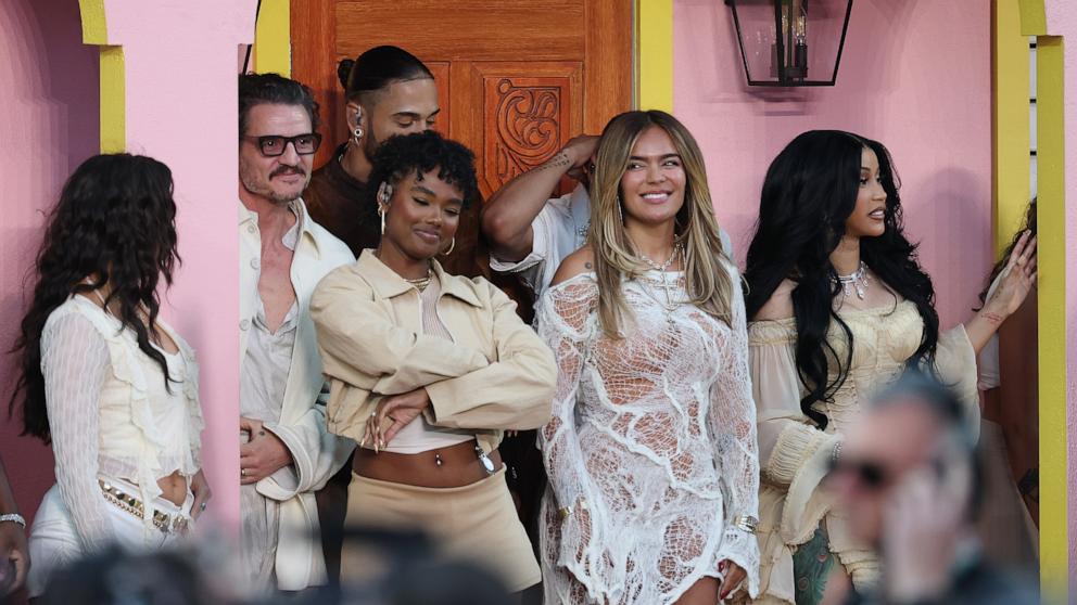 Da settimane si vociferava della presenza di alcune celebrities all’interno dell’esibizione. Fuori dalla Casita posta al centro dello stadio si riconoscono infatti, tra i ballerini, alcune star latinoamericane: Cardi B, Pedro Pascal, Jessica Alba e Karol G.