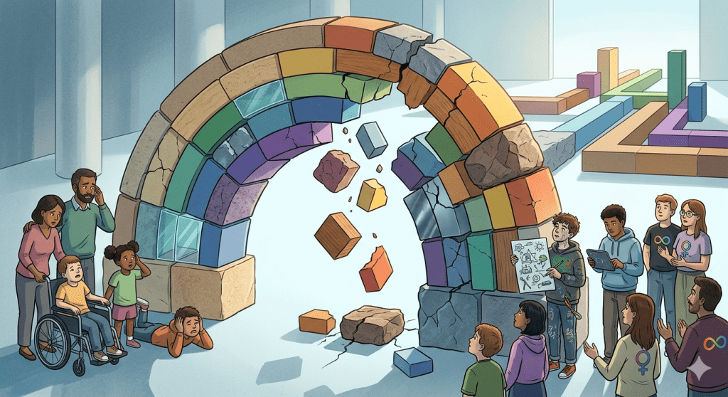 Uno dei punti più critici è la progressiva marginalizzazione dell’autismo profondo. Mentre la narrazione pubblica si è spostata verso la neurodiversità e l’accettazione sociale dei tratti autistici lievi, le famiglie di persone con bisogni di assistenza h24 si sentono abbandonate. La “gentrificazione” della diagnosi ha fatto sì che le risorse, l’attenzione mediatica e persino la ricerca scientifica si concentrassero maggiormente sulla parte dello spettro con “alto funzionamento”. Questo fenomeno rischia di rendere invisibili le sfide brutali legate all’autolesionismo, all’assenza di linguaggio e alle patologie mediche concomitanti. La costruzione dello spettro ha creato un’illusione di uguaglianza che, nei fatti, penalizza chi è più vulnerabile, privandolo di una terminologia specifica che ne riconosca la specificità e la gravità.